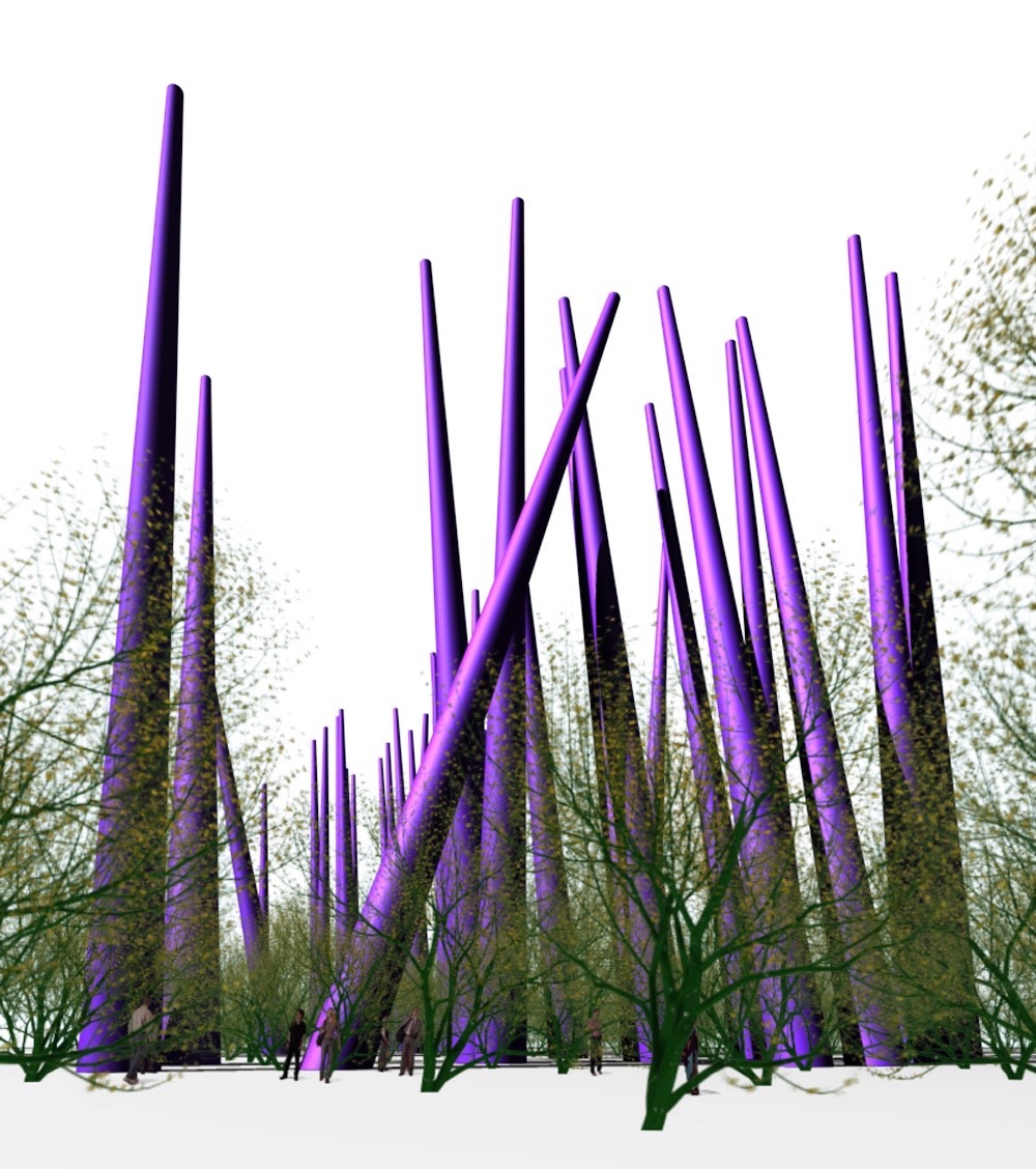 Particulars: (50) "Saguaro Needles", up to 180' in height, would be interspersed within a grove of 100 Desert Museum palo verde trees. Night lighting is provided by solar powered light emitting diodes. The project includes recycled materials, generation of solar energy, rainwater harvesting, and resource awareness exhibits.